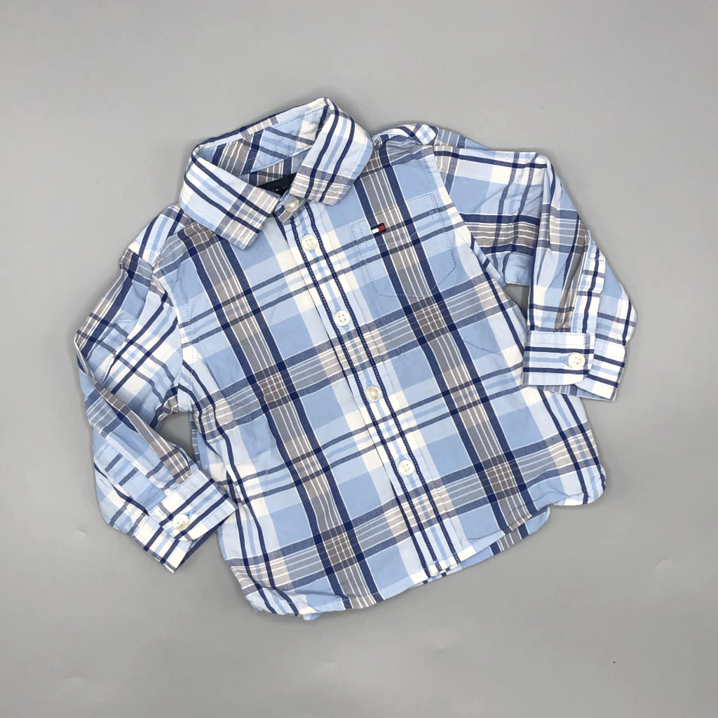 Camisa Tommy Hilfiger Talle 3-6 meses cuadrillé azul celeste blanco