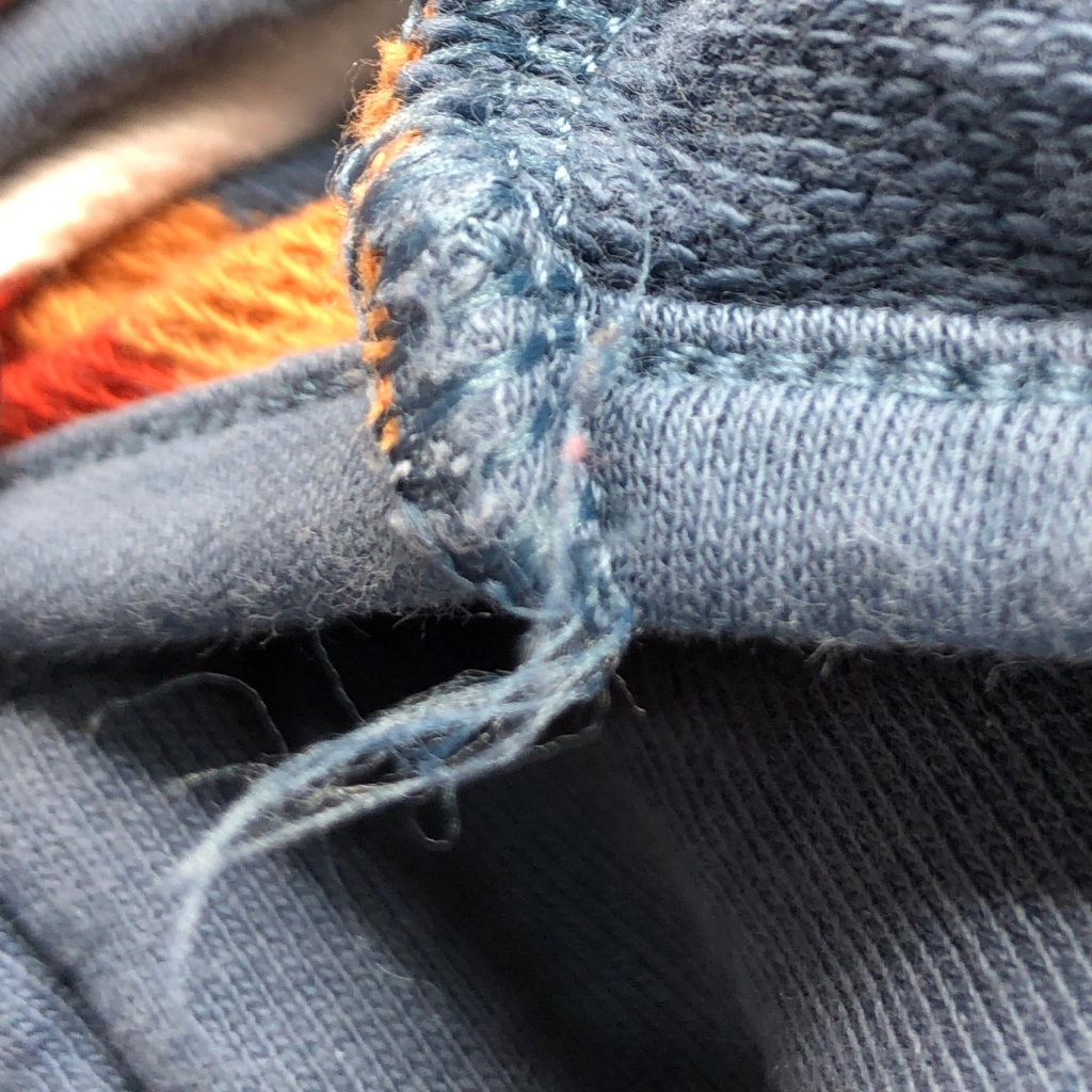 Detalle: deshilachado en la parte de cuello y costado con desgate de tela. Ver últimas fotos.